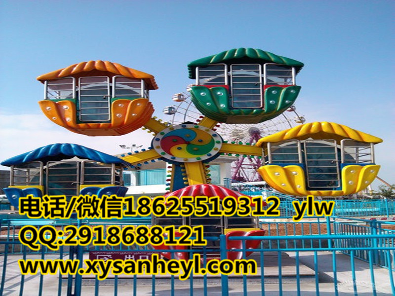 觀覽車”衍生于大型主題摩天輪,它的外觀新穎,顏色鮮艷,設計完美,是集美觀與安 全為一體的產品。專門為兒童青少年量身定做,由單雙面可供選擇,每面大盤上面懸掛5個花式座艙。同時觀覽車能夠很好的滿足孩子們登高眺望,俯瞰四周的愿望,雖然不能瀏覽到整個城市的景貌,但是也可以觀看到整個公園或廣場的情形了,同時和父母能夠有很好溝通交流,因此很受孩子們的歡迎。