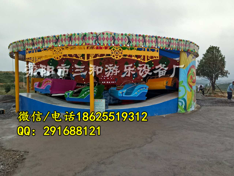 雷霆節(jié)拍是滎陽市三和游樂設備廠最新的一款刺激性的游樂設備,常見規(guī)格為8臂24人和10臂30人,設備電壓為380v,功率最大值為16kw,占地面積有10*10米和13*13米,運行高度小于2米。自轉一圈內有3個起伏點,最低位是30公分。最高是1.2米。運作期間,乘客坐在座艙內,環(huán)繞中間的大鉆石旋轉,時明時暗的穿梭,人們猶如海浪般上下起伏、尖叫不斷。