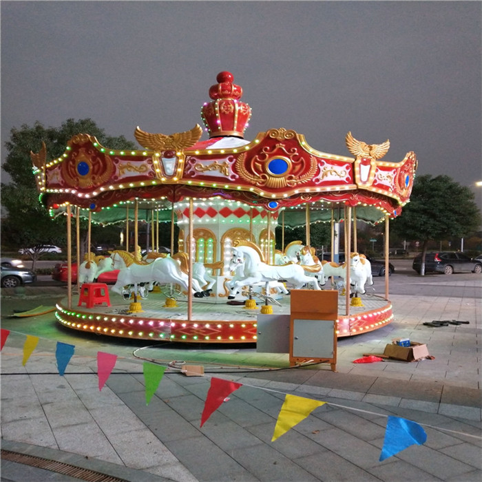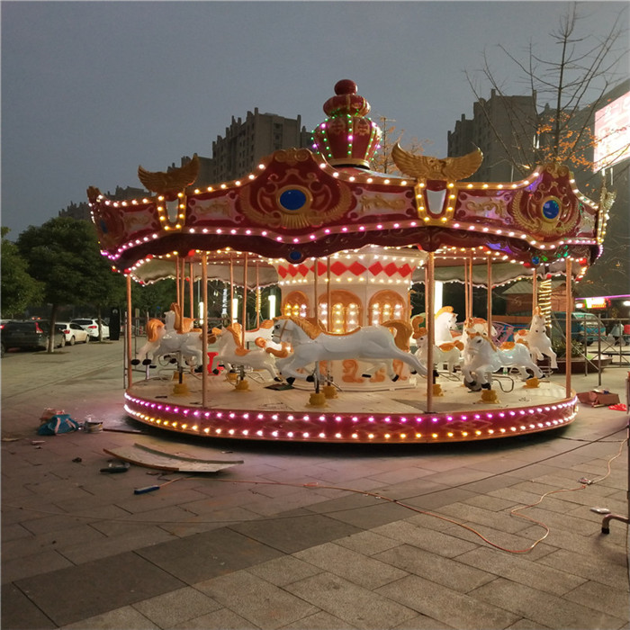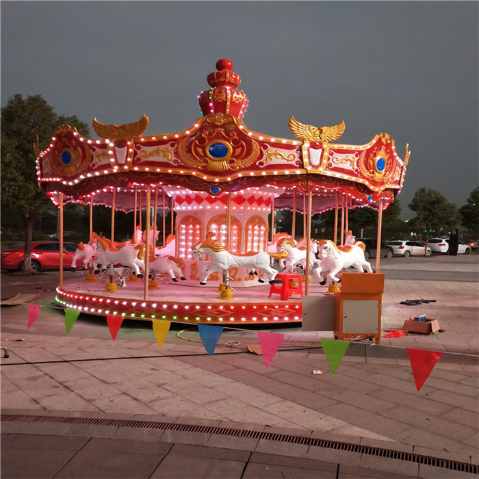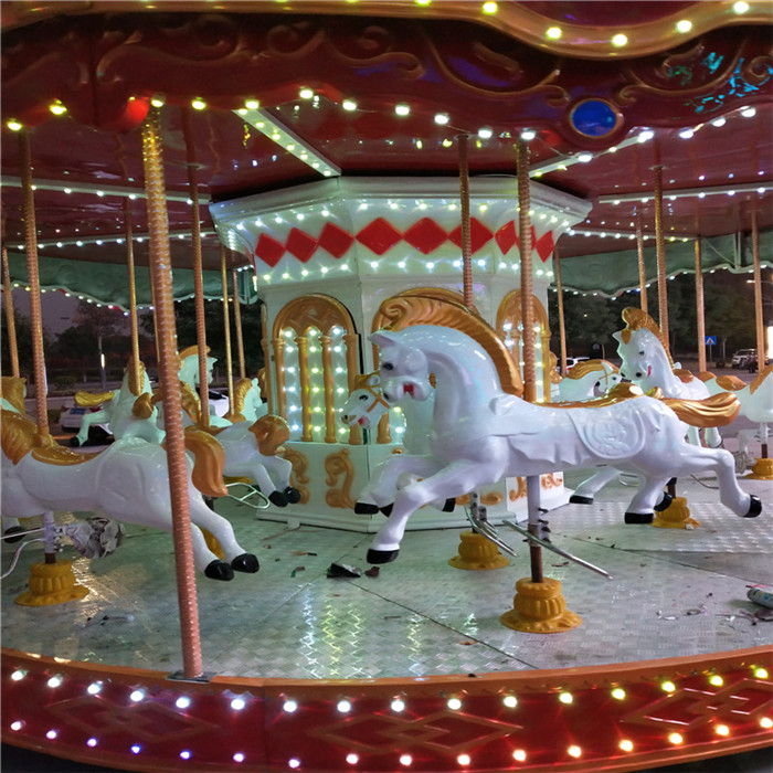 轉(zhuǎn)馬游藝機(jī),外形新穎,顏色絢麗,是青少年朋友們非常喜愛(ài)乘坐的游藝機(jī)。轉(zhuǎn)馬啟動(dòng)之后轉(zhuǎn)盤(pán)勻速轉(zhuǎn)動(dòng),形態(tài)各異的轉(zhuǎn)馬隨之上下起伏,使游樂(lè)者產(chǎn)生縱馬揚(yáng)鞭、馳騁疆場(chǎng)的感覺(jué)。本產(chǎn)品適用于公園游樂(lè)場(chǎng)、少年宮、生活廣場(chǎng)、社區(qū)等人口密集流動(dòng)場(chǎng)所。該產(chǎn)品采用玻璃鋼材料制作,具有環(huán)保、安 全、耐腐蝕、穩(wěn)定性好等特點(diǎn),可根據(jù)場(chǎng)地條件定做。