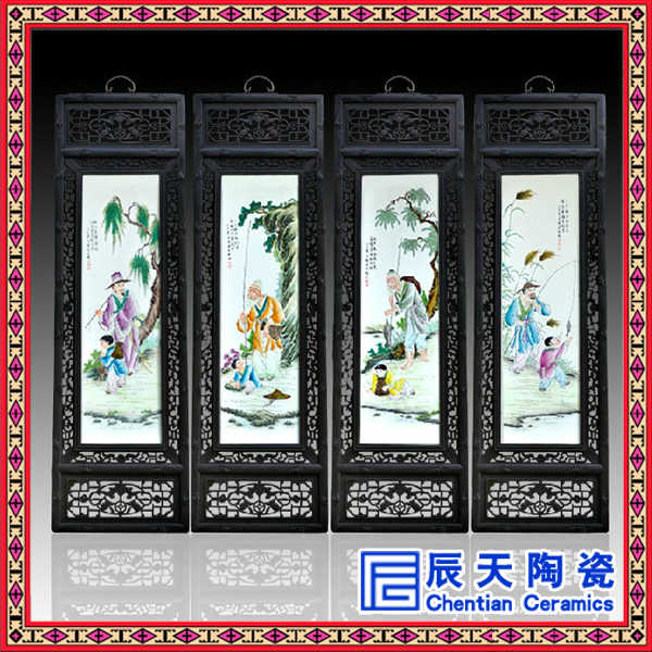 自清朝中期開始,瓷板畫的發(fā)展走向了興盛。當(dāng)時的瓷板畫藝人致力于把紙絹上的中國畫移植到瓷器上,因此瓷板畫受到了人們的青睞,成為重要的商品瓷。嵌瓷屏風(fēng)無論是圍屏、插屏還是掛屏,都經(jīng)常會見到上邊鑲嵌有裝飾意味濃厚的瓷板畫。品種非常多,有青花、青花釉里紅、五彩、斗彩、粉彩、墨彩、淺絳彩等等,紋飾內(nèi)容涉及面也很廣,包括人物、山水、花卉、翎毛、魚藻以及吉祥圖案.
