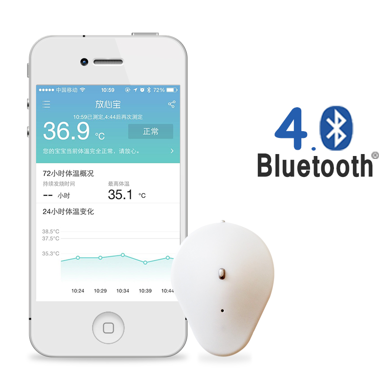 1.體溫異常手機(jī)即可自動(dòng)報(bào)警,家長(zhǎng)可立刻采取降溫措施。(體溫計(jì)與手機(jī)app連接,設(shè)置報(bào)警溫度后,體溫超過(guò)設(shè)定值時(shí),手機(jī)立刻鳴聲報(bào)警)