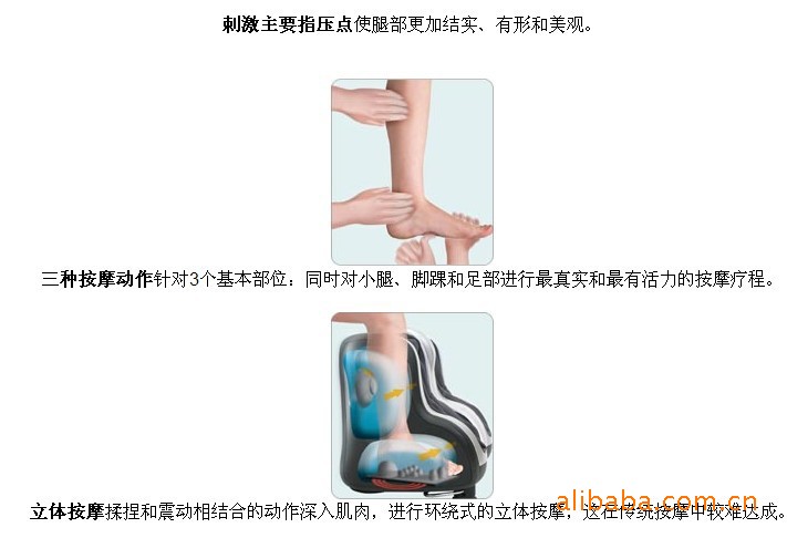1、這款新年型按摩儀能同時(shí)對(duì)您的腳部、踝關(guān)節(jié)及腿部進(jìn)行按摩。