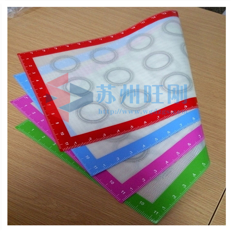 采用食品級硅膠原料,產(chǎn)品符合fda、lfgb ,中間為玻璃纖維層有助于加強(qiáng)硅膠的抗撕裂性能,不粘、耐溫的特性使此產(chǎn)更好的用于食品的烘烤,同時可用作餐墊、桌墊、隔熱墊、面團(tuán)墊等,是廚房里不可缺少的物品,表面可按要求印刷任意圖案.