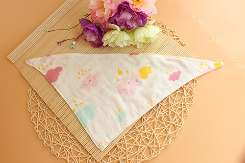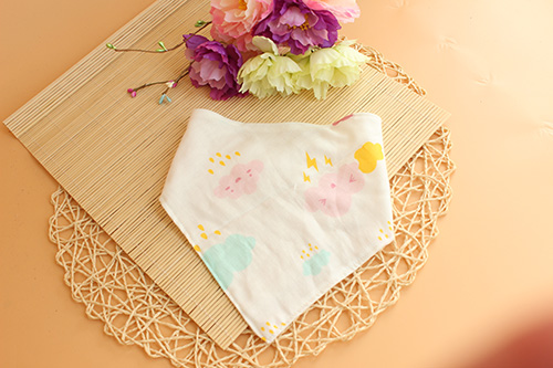 織繪坊紗布批發(fā)嬰兒雙層摁扣紗布三角巾口水巾卡通印花無熒光圍嘴圍兜