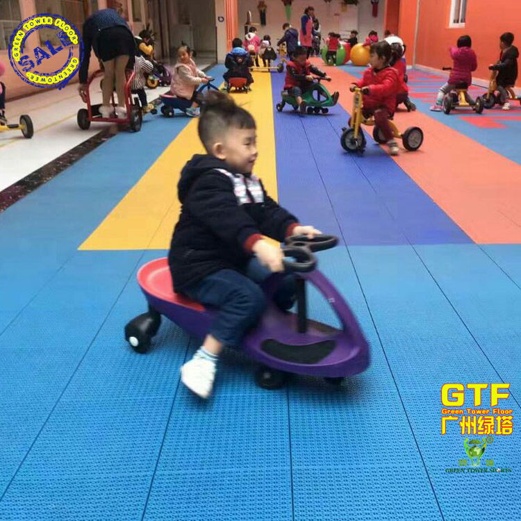 ⑥綠塔拼裝地板十余種顏色顏色多樣可以自由搭配,新穎、美觀。球場(chǎng)檔次高。
