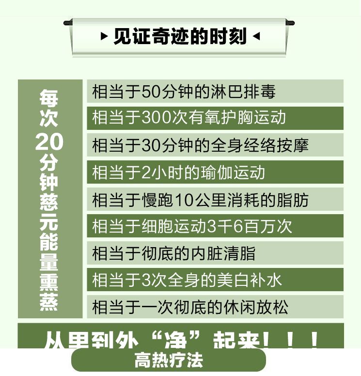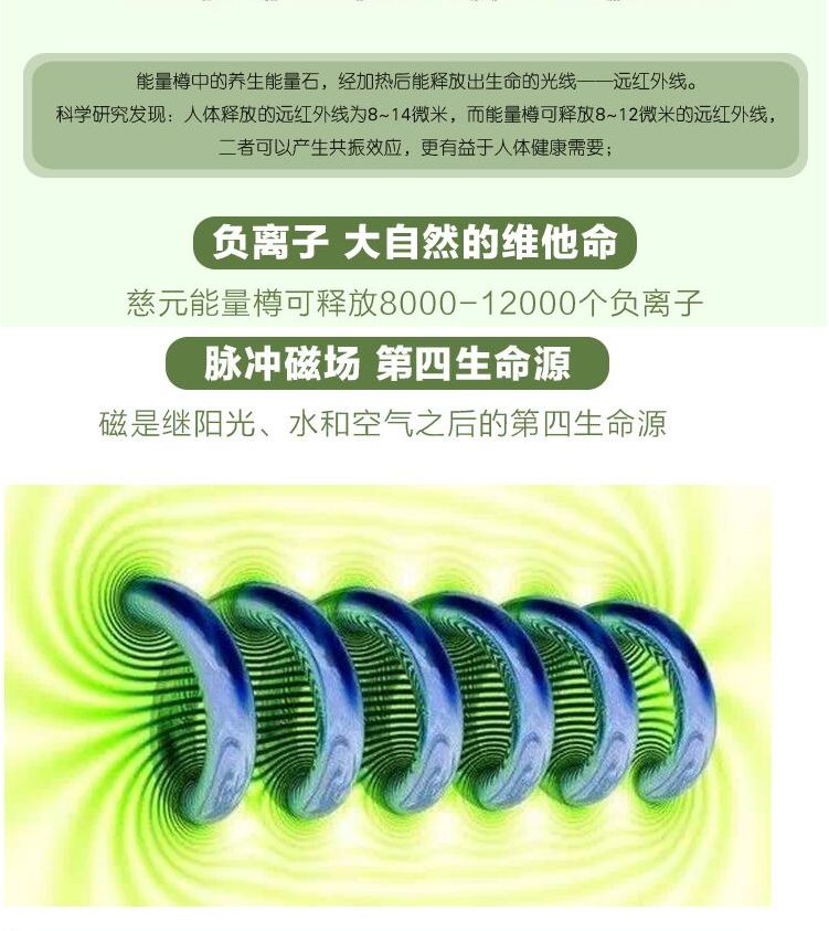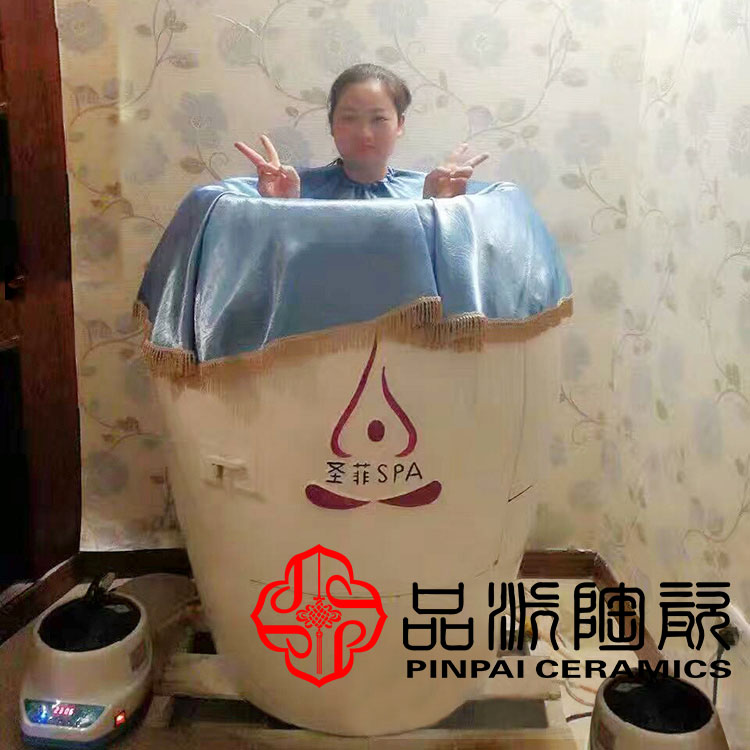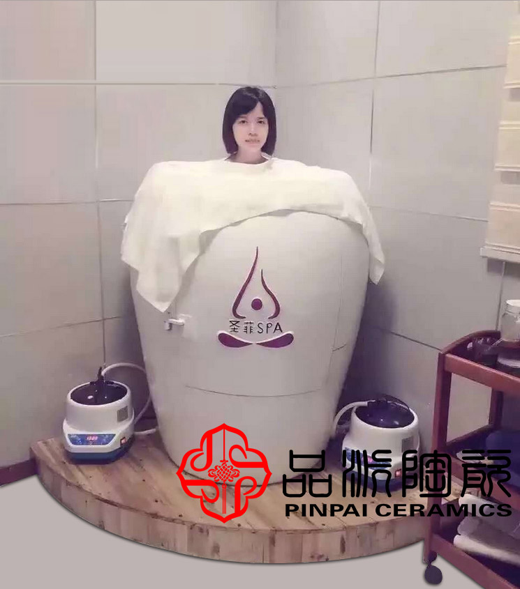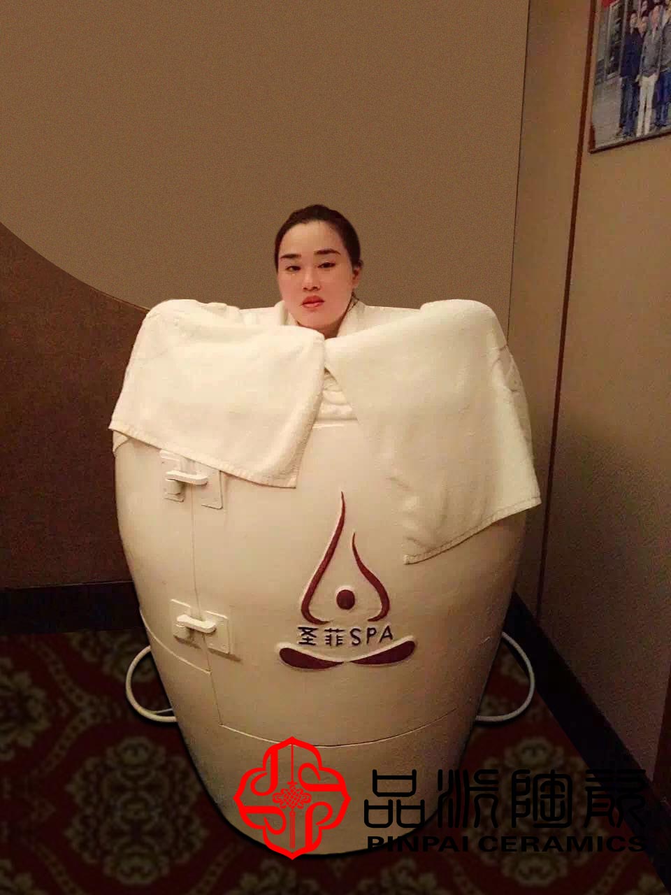 負(fù)離子養(yǎng)生甕外觀整體呈卵形,中空,甕體以養(yǎng)生巖寶粉 與陶土混合后經(jīng)過成泥、雕刻、燒制、制模、風(fēng)干、打磨等九道工序精心燒制而成,其內(nèi)壁以特定規(guī)則密布2200顆銅錢般大小的養(yǎng)生巖寶石。通過二合一調(diào)節(jié)器將蒸汽輸入甕內(nèi),使甕內(nèi)達(dá)到42-47℃的高溫,在此溫度下甕壁內(nèi)2200顆巖寶石釋放大量負(fù)離子、遠(yuǎn)紅外線,并且負(fù)離子養(yǎng)生甕可以形成一個禁錮的650高斯四相脈沖磁場,人體一旦進(jìn)入其中,在人體表面形成一個負(fù)壓脈沖磁場,提高人體循環(huán)系統(tǒng)及肌肉組織的吸收功能,有效激活人體細(xì)胞的活性。負(fù)離子養(yǎng)生甕遵循古代養(yǎng)生原理結(jié)合能量醫(yī) 學(xué)理論,并運(yùn)用現(xiàn)代高科技手段,通過薰蒸、高熱、 負(fù)離子、遠(yuǎn)紅外線以及脈沖磁場五法合一,協(xié)調(diào)補(bǔ)充,從而實(shí)現(xiàn)暢通經(jīng)絡(luò)、平衡五臟、抗自由基、平衡內(nèi)分泌、凈化血液等功效。汗蒸負(fù)離子養(yǎng)生甕調(diào)理主要體現(xiàn)在“排、調(diào)、補(bǔ)、養(yǎng)”。排:通過高熱、薰蒸、遠(yuǎn)紅外線穿透和核磁共振,打開人體皮脂腺,疏通人體排泄的第三通道,排出深層汗液,汗液顏色了知健康,其排毒功效可以達(dá)到90;可以促進(jìn)新陳代謝,確保清新鮮活的體內(nèi)環(huán)境。 調(diào):調(diào)節(jié)體內(nèi)酸 堿 平衡,調(diào)節(jié)內(nèi)分泌,提高超氧化物歧化酶功能,促進(jìn)血液粘稠度的分離,清潔血液,暢通血管;補(bǔ):補(bǔ)充體內(nèi)負(fù)離子,增強(qiáng)細(xì)胞活性,提高人體對自然養(yǎng)分的吸收能力,提高免疫力。養(yǎng):加強(qiáng)平時保養(yǎng),堅(jiān)持甕蒸和飲用負(fù)離子巖寶水,維持人體內(nèi)分泌平衡,以保持健康,頤養(yǎng)天年。