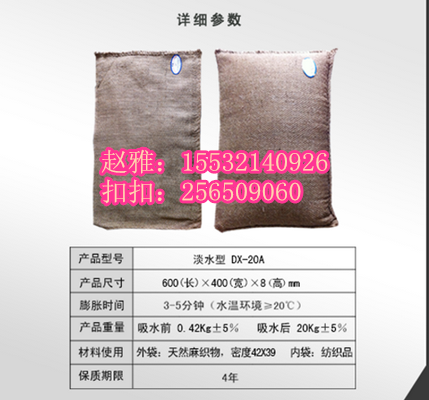 河北五星電力設(shè)備(防汛)有限公司的防汛吸水膨脹袋產(chǎn)品的標(biāo)準(zhǔn)規(guī)格350*600(mm),吸水后18-20kg,吸水時間3-5分鐘。若客戶需特殊規(guī)格,河北五星電力設(shè)備(防汛)有限公司的防汛吸水膨脹袋可根據(jù)所需訂制.