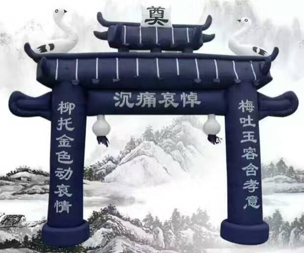 白事拱門價格便宜,并可根據(jù)客戶的要求,設(shè)計生產(chǎn)各種充氣模型,白事拱門和各種喪葬道具,靈棚,冰 棺,水晶棺,是殯葬禮儀的好幫手,由于設(shè)計合理造型逼真,產(chǎn)品遠(yuǎn)銷全國三十多個省市和世界各地,深受國內(nèi)外廣大客商的歡迎.