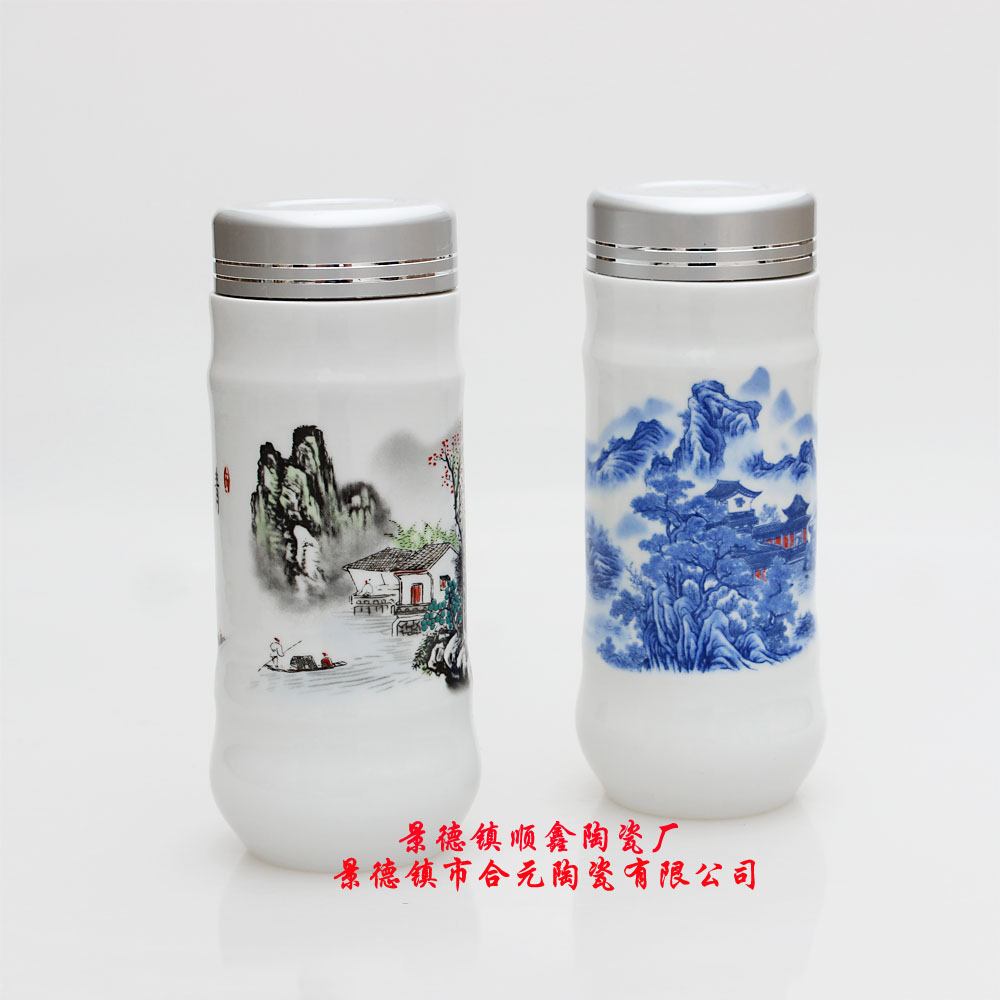 景德鎮(zhèn)合元陶瓷有限公司專業(yè)生產(chǎn)禮品陶瓷保溫杯定制,禮品陶瓷保溫杯定制全部采用骨質(zhì)瓷,雙層結(jié)構(gòu),強(qiáng)磁內(nèi)膽,納米技術(shù),杯內(nèi)采用強(qiáng)磁內(nèi)膽,經(jīng)過一千三百五十度高溫?zé)贫,環(huán)保健康,對人體無任何傷害。禮品陶瓷保溫杯定制的優(yōu)勢:雙層結(jié)構(gòu),隔熱防燙,含有納米科技,具備很強(qiáng)的吸附功能,降解水中有害物質(zhì),且熱穩(wěn)定性好(一百八十度—二十度熱交換不裂)青花瓷上運(yùn)用天然鈷料在白泥上進(jìn)行繪畫裝飾,再罩以透明釉,然后在高溫一千三百攝氏度一次燒成,使色料充分滲透于坯釉之中,呈現(xiàn)青翠欲滴的藍(lán)色花紋,顯得幽倩美觀,明凈素 雅。詮釋中國傳統(tǒng)藝術(shù)韻味的圖案,韌性強(qiáng),氣韻悠長,堪稱杯皿優(yōu)秀。
