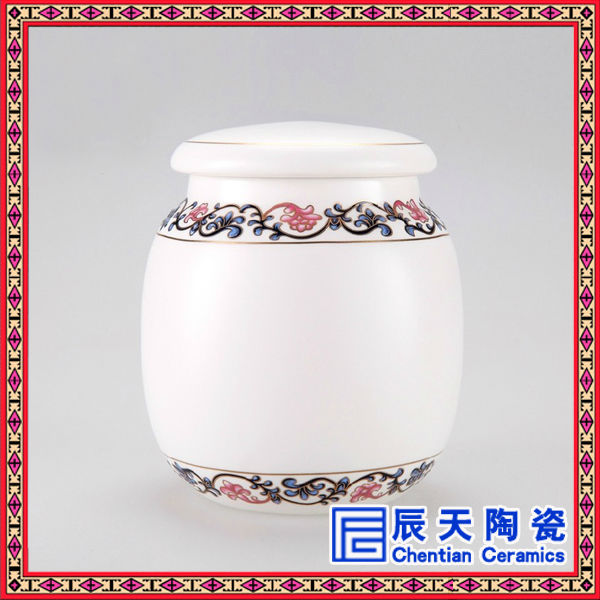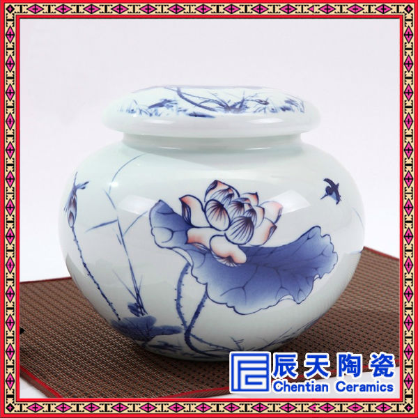 景德鎮(zhèn)廠家專業(yè)訂做陶瓷茶葉罐,青花瓷茶葉罐,陶瓷藥罐,陶瓷米罐,陶瓷棗罐,陶瓷食品罐,陶瓷將軍罐等系列陶瓷罐子完全采用景德鎮(zhèn)高質(zhì)高嶺土,經(jīng)1300多攝氏度高溫?zé)贫桑峭耆苫奶沾芍破贰?
