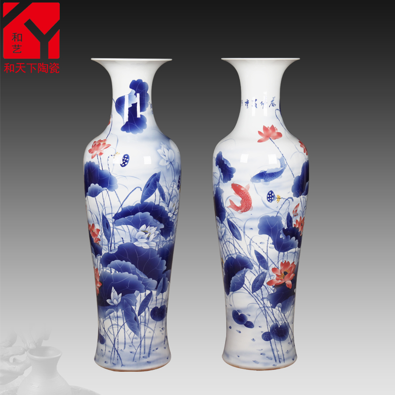 落地陶瓷大花瓶手繪牡丹年年有余,主畫(huà)面為年年有余,景德鎮(zhèn)陶瓷大花瓶為商務(wù)禮品瓷器,適應(yīng)大場(chǎng)所,大場(chǎng)面。酒店賓館陳設(shè),企業(yè)單位慶典,店鋪開(kāi)張,周年紀(jì)念,大樓建筑落成