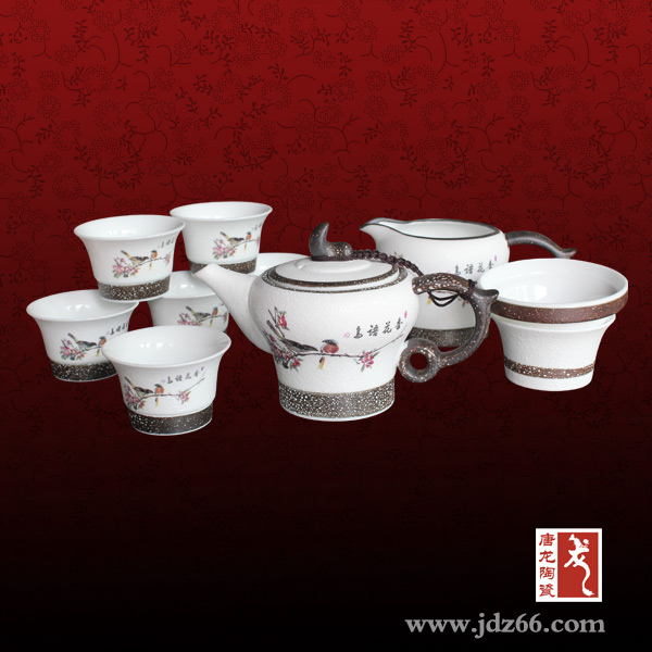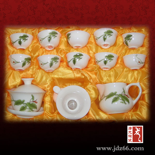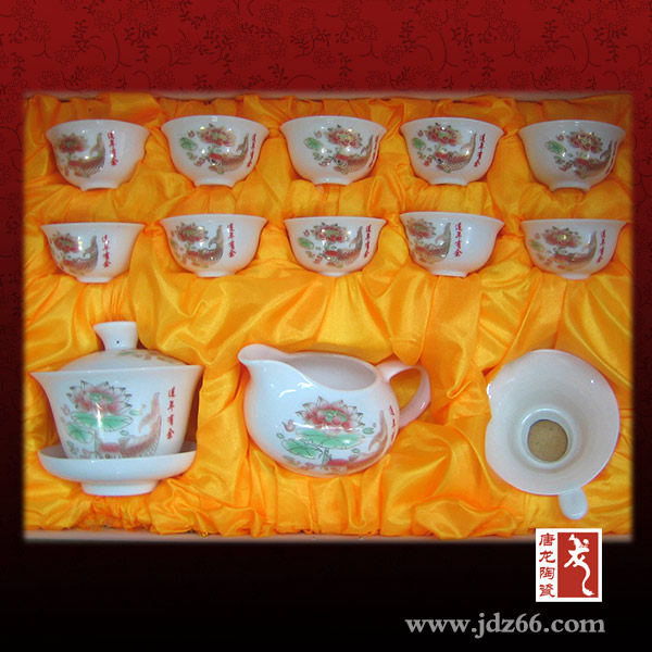 我公司還可以根據(jù)您的需要定制陶瓷功夫茶具,可以印制您需要的各種圖片、添加公司logo圖形和文字等。作為一家植根于千年瓷都景德鎮(zhèn)的陶瓷企業(yè),唐龍已經(jīng)發(fā)展成為一家集產(chǎn)品設(shè)計(jì)、開(kāi)發(fā)、制造、包裝等整套工藝流程為一體是具有一定規(guī)模的陶瓷功夫茶具生產(chǎn)廠家。