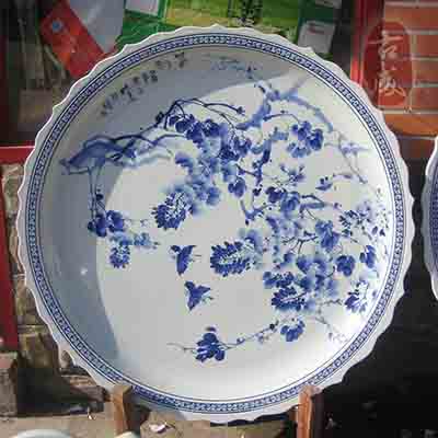 景德鎮(zhèn)古成陶瓷于在2012年推出酒店海鮮大瓷盤以來,F(xiàn)已為浙江溫州“味仙”酒樓、浙江義烏“王都”酒樓、廣東深圳“漢龍”酒樓等一些知名酒樓定做過大魚盤,深受廣大客戶的信賴與支持。其特色的巨型瓷盤與其獨特的餐飲風(fēng)格,獨特的飲食氣氛,其形成了一道特色的招牌菜系。深受廣大客戶的追求和喜愛。我廠生產(chǎn)的瓷盤畫面是采用景德鎮(zhèn)傳統(tǒng)手工繪制的。畫面有富貴牡丹、江南水鄉(xiāng)、亭臺樓閣、青花山水等經(jīng)典畫面,畫面可以根據(jù)客戶需求定做。大瓷盤的主體工藝如果想通過模具制作那是根本不可能的。原料必須采用景德鎮(zhèn)原產(chǎn)的高嶺土簡稱:(高白泥)以及傳統(tǒng)的手工拉坯工藝成型。因此制作這款陶瓷的開始都是老師傅手工拉坯。修胚待泥胚干燥后,純手工繪制圖案。這是現(xiàn)代貼花工藝不可企及的。而這僅僅是其中的一部分,其最后取決與窯火燒制(古有十窯七不成的說法)就像我們制作10塊150公分的瓷盤就必須要準(zhǔn)備15塊泥胚。甚可能會更多?上脒@不僅是我們?nèi)沼玫拇杀P。更多的是一件藝術(shù)品。