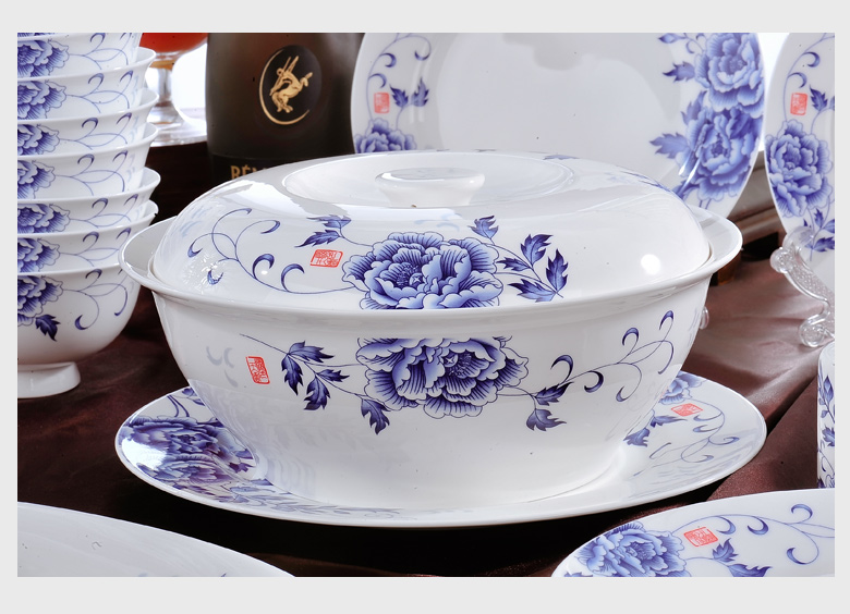 品名: 56頭青花釉下彩骨瓷餐具-國色天香