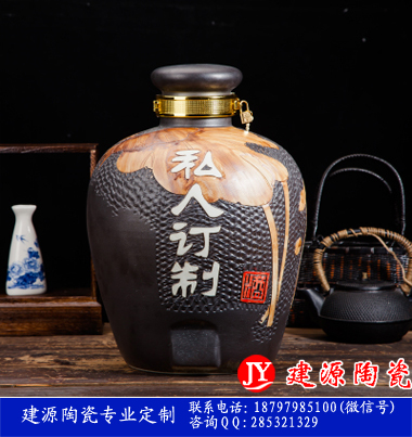 5:精美的陶瓷瓶容易被接收,保存收藏,儲藏食品,特別市裝酒瓶,保健酒等, 我廠長年與全國各地各家散酒廠直接供貨,貨源穩(wěn)定。量大從優(yōu),這里有各有尺寸的酒壇子,也有密封的酒壇子,各種尺寸的壇子各種容量的酒壇子。,二斤,3斤。4斤,。5斤。8斤。6斤。10斤裝,20斤裝,50斤,100斤-200斤裝也可以按客戶的要求來開模訂做。可以訂做各種檔次的,中,高,低檔三種應(yīng)有盡有。景德鎮(zhèn)建源陶瓷廠酒壇是業(yè)界最大最專業(yè)的陶瓷酒瓶生產(chǎn)廠家,我廠長期大量供應(yīng)各種規(guī)格的青花瓷酒壇,粉 彩酒壇,手繪酒壇,描金酒壇,雕刻酒壇,顏色釉酒壇,藝術(shù)酒壇等,我廠生產(chǎn)陶瓷酒壇造型各異,做工精湛。
