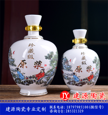 四是 陶瓷酒瓶取材于景德鎮(zhèn)天然礦物,它含有鐵、銅、錳、鈣等元素 ,陳酒周期長,有助白酒老熟,又有益健康。 景德鎮(zhèn)陶瓷工藝淵源流長,被稱為世界文化藝術(shù)瑰寶,展示著景德鎮(zhèn)悠久的陶瓷文化歷史。我們廠生產(chǎn)的陶瓷工藝酒瓶規(guī)格品種繁多,從1斤裝到10斤裝都有,也可以根據(jù)客戶的要求來定制。陶瓷酒瓶選料考究,做工精細(xì)。既有古老藝術(shù)之魅力,又具典雅明快的現(xiàn)代藝術(shù)風(fēng)格。正宗的景德鎮(zhèn)陶瓷酒瓶一定會為您的產(chǎn)品增色,為您的企業(yè)增利!