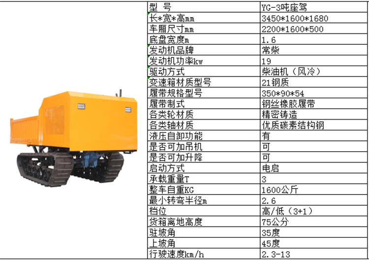 我廠生產(chǎn)的履帶運輸車具備機械轉(zhuǎn)向或液壓轉(zhuǎn)向,操作簡單,方便靈活。兩個多節(jié)伸縮液壓缸,卸貨更省力。車駕采用矩形方管堅固耐用,車箱采用5㎜高強鋼板焊接結(jié)構(gòu)。該機動力強勁,采用錫柴、維柴490發(fā)動機。采用進口變速箱,高中低三個檔位,車廂尺寸可接受定制。為滿足不同客戶的需求,履帶底盤分為農(nóng)用鋼絲橡膠履帶和工程用鋼制橡膠履帶,產(chǎn)品型號更齊全,更耐用。