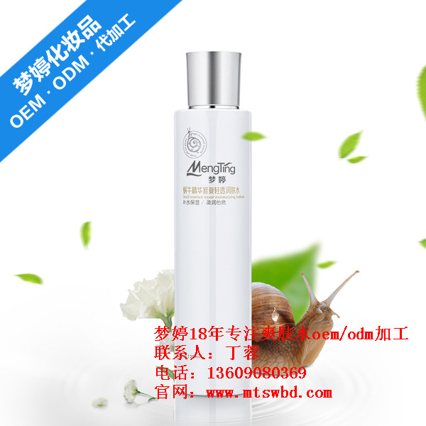 廣州夢(mèng)婷生物科技有限公司是一家大型廣州爽膚水oem代加工廠家,成立于2000年,坐落于廣州白云區(qū)人和鎮(zhèn),擁有國(guó)際領(lǐng)先的gmp標(biāo)準(zhǔn)廠房,10條爽膚水oem生產(chǎn)自動(dòng)化標(biāo)準(zhǔn)流水線。工廠擁有先進(jìn)的爽膚水代加工檢驗(yàn)設(shè)備和國(guó)內(nèi)一流的生產(chǎn)環(huán)境,2014年通過了iso9001、iso14001、gmpc(美版)體系認(rèn)證。夢(mèng)婷爽膚水oem貼牌的工業(yè)區(qū)內(nèi)規(guī)范高效的政府管理,完善的基礎(chǔ)設(shè)施,發(fā)達(dá)的交通物流,為企業(yè)爽膚水oem代工發(fā)展提供了便利的發(fā)展環(huán)境。夢(mèng)婷標(biāo)準(zhǔn)的生產(chǎn)規(guī)范、前沿的生產(chǎn)設(shè)備、精準(zhǔn)的生產(chǎn)工藝,保證每一瓶產(chǎn)品在安 全性和有效性達(dá)到國(guó)際領(lǐng)先水平。