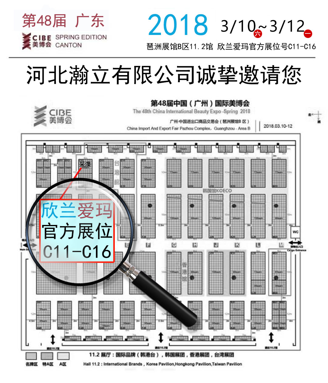 2018年3月第48屆中國廣州國際美容博覽會(huì)將于在廣交會(huì)展覽館舉行,我司與兄弟公司采潗誠邀您一同襄盛舉。(我司展位號(hào)11.2 館 c11-c16。)凡是展會(huì)之前,通過我司進(jìn)購臺(tái)灣化妝品牌 欣蘭或emma1997系列產(chǎn)品,金額達(dá)到5000即可取得授權(quán)證書。