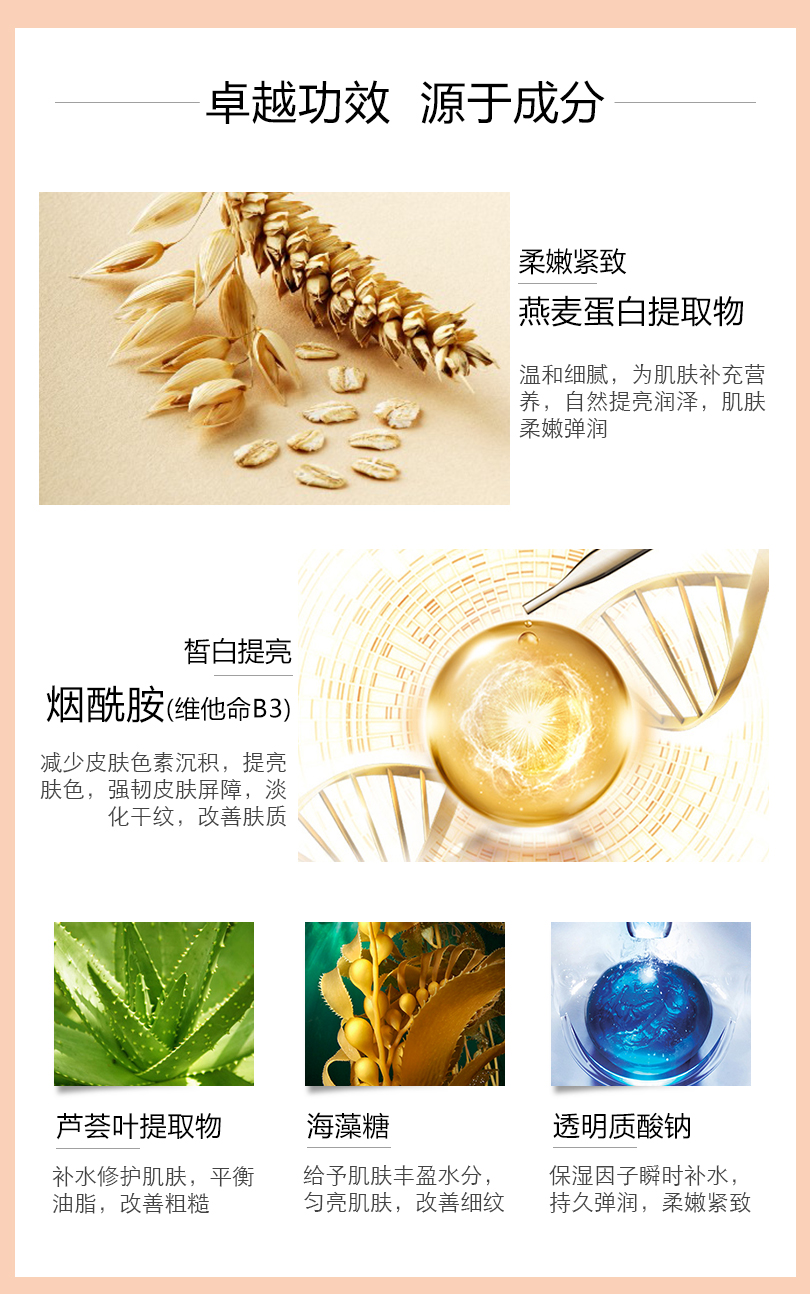 產(chǎn)品成分:水,丙二醇,甘油,環(huán)五聚二甲 基硅氧烷、庫拉索蘆薈(aloe barbadensis)葉、海藻糖,硬脂醇聚醚-21、硬脂醇聚醚-2、黃瓜(cucumis sativus)果提取物、燕麥 (avena sativa)蛋白提取物、鯨蠟、煙酰胺 、羥乙基纖維素 ,卡波姆,羥苯 甲 酯,透明質(zhì)酸 鈉,羥苯 丙酯、、香精等。
