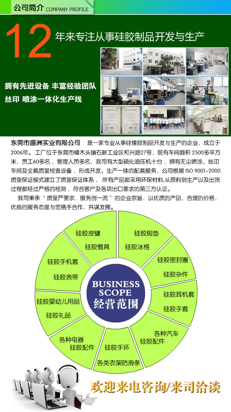 東莞市盛洲實業(yè)有限公司成立于二零零六年,是一家從事各類硅橡膠制品生產(chǎn) 、制作的專業(yè)廠家,生產(chǎn)車間 2500 平方米,現(xiàn)有員工50余名,公司擁有混煉機、熱壓成型機、沖床、自動噴油流水線、絲印機、移印機等大型加工設備。