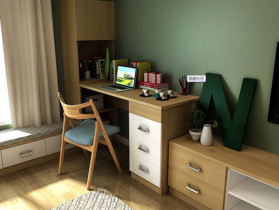 衣柜用了晨曦的板材色,做到頂,增加收納空間,腰線用黑色玻璃點(diǎn)綴;⌒无D(zhuǎn)角側(cè)柜線條柔和,防碰撞。飄窗做成回字型,上下左右的空間都得到充分的利用,側(cè)柜延伸出書(shū)桌和梳妝區(qū),打造了多功能區(qū),集收納、休閑和學(xué)習(xí)于一體。