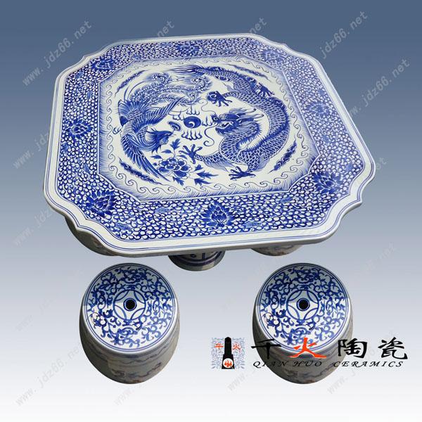 景德鎮(zhèn)廠家直銷陶瓷桌凳、景德鎮(zhèn)陶瓷瓷桌、青花陶瓷桌子陶瓷凳子、粉彩陶瓷桌凳、手繪陶瓷桌凳居家用品、園林用品、居家擺設(shè)品園林?jǐn)[設(shè)品。 景德鎮(zhèn)市唐龍?zhí)沾山?jīng)營(yíng)部生產(chǎn)銷售商務(wù)禮品、園林用品、居家用品陶瓷桌、陶瓷凳(盛夏之夜,一家人在陽臺(tái)、庭院中,圍坐在陶瓷桌旁,喝茶賞月,其樂融融…….)景德鎮(zhèn)陶瓷桌子(凳子):高溫?zé)频奶沾勺雷、凳子為景德?zhèn)特有,它可以放在室外或者陽臺(tái),不怕日曬雨淋,不會(huì)產(chǎn)生類似破損或者變型等問題,陶瓷桌面、凳子的畫面是手工繪畫的,藝術(shù)感非常強(qiáng)。同時(shí)我們工廠可以單獨(dú)繪制客戶喜愛的畫面,或者贈(zèng)送題字等,具有非凡的紀(jì)念意義!景德鎮(zhèn)陶瓷桌凳具有不怕風(fēng)吹雨打、歷久如新、易清潔等特點(diǎn)。是家居使用、園林?jǐn)[設(shè)、饋贈(zèng)親友的時(shí)尚用品。放置在庭院、露臺(tái)、陽臺(tái)雅致高貴。本公司完全采用景德鎮(zhèn)傳統(tǒng)手工陶瓷制作工藝制作。圓桌面、方桌面,青花、粉彩、墨彩等畫面齊全,款式多樣。