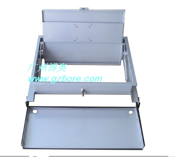 產(chǎn)品名稱: 半嵌式手動(dòng)液晶屏翻轉(zhuǎn)式(帶鍵盤架)產(chǎn)品說明使用時(shí)只要打開鎖,液晶顯示屏便會(huì)自動(dòng)翻起,鍵盤也同時(shí)自動(dòng)打開。當(dāng)不使用時(shí),可用手動(dòng)按下翻蓋面板。整個(gè)翻轉(zhuǎn)器與桌面齊平,產(chǎn)品具有防塵保持桌面平整,美化桌面等功能。翻轉(zhuǎn)器為優(yōu)質(zhì)低碳鋼板加工而成,經(jīng)過靜電噴涂,高溫烘漆等工序的后續(xù)處理,使液晶電服桌堅(jiān)固耐用