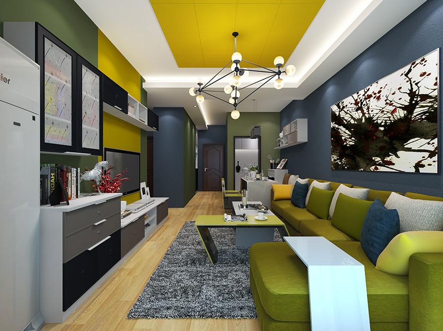 空間用色大膽鮮明,果綠色布藝沙發(fā)和墻面在色調(diào)上呼應(yīng)統(tǒng)一。配套家具用了星光系列產(chǎn)品,采用象牙白、騎士灰、穿越藍三種色調(diào),融入星元素 ,營造浪漫溫馨的氛圍。餐廳以卡座代替餐桌,餐邊柜以矮柜和吊柜結(jié)合,形式靈動隨意。電視柜造型簡單卻不失美感,儲物性能佳,使用方便。