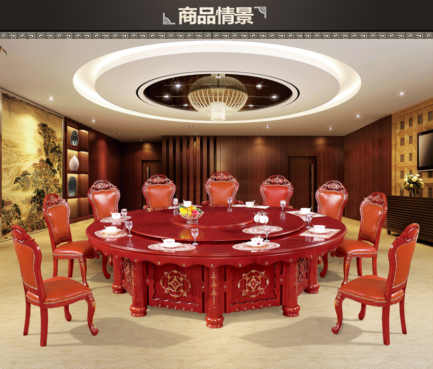 適用地點:星級酒店,飯店豪華包廂,高級會所,政府單位......等詳細(xì)說明:橡膠木框架,精工雕刻,貼金箔,高密度板雙層貼木皮臺面,轉(zhuǎn)盤自動轉(zhuǎn),遙控控制,內(nèi)部優(yōu)質(zhì)鋼架結(jié)構(gòu),特質(zhì)機芯,合資電機,臺灣“大寶”耐磨環(huán)保面漆。