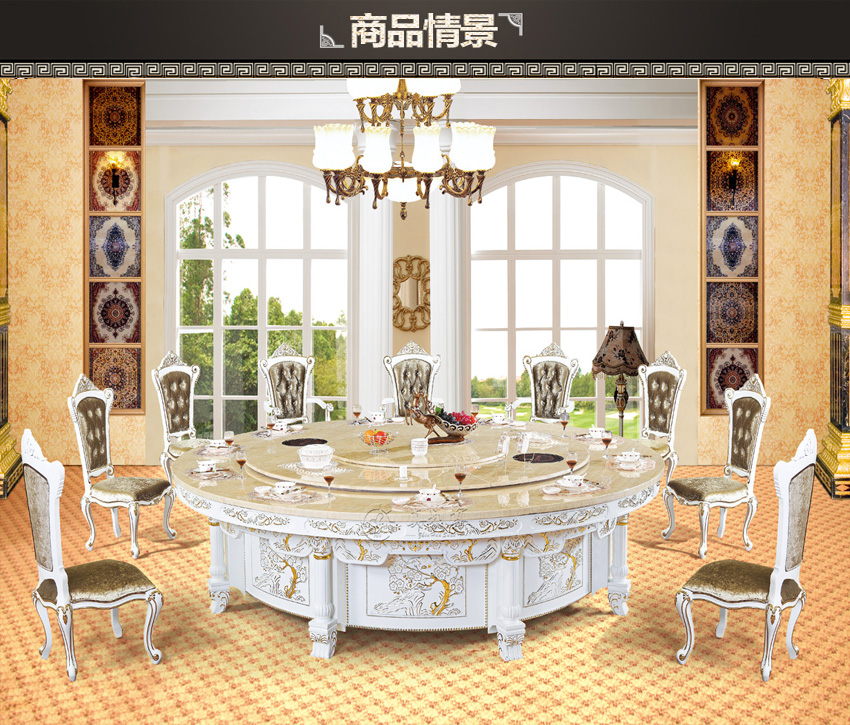 適用地點(diǎn):星級酒店,飯店豪華包廂,高級會(huì)所,政府單位......等詳細(xì)說明:橡膠木框架,精工雕刻,貼金箔,青云石樹脂飾面臺面,轉(zhuǎn)盤自動(dòng)轉(zhuǎn),遙控控制,內(nèi)部優(yōu)質(zhì)鋼架結(jié)構(gòu),特質(zhì)機(jī)芯,合資電機(jī),臺灣“大寶”耐磨環(huán)保面漆。