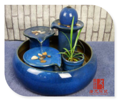 3、陶瓷風(fēng)水噴泉擺件種類繁多,實(shí)用,耐用,可以養(yǎng)風(fēng)水魚,種植植物等。