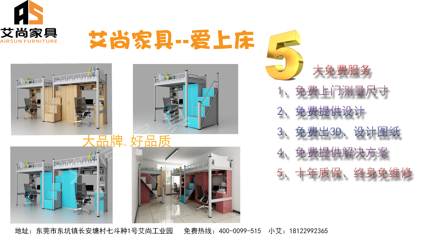 廣東艾尚家具有限公司專業(yè)生產(chǎn)批發(fā)銷售學(xué)生公寓床,上下鐵架床,員工宿舍床,學(xué)生床等各類宿舍家具
