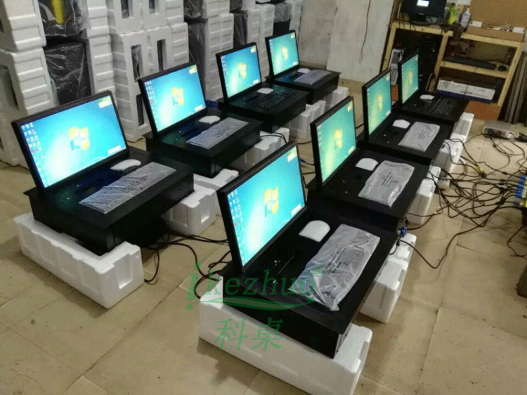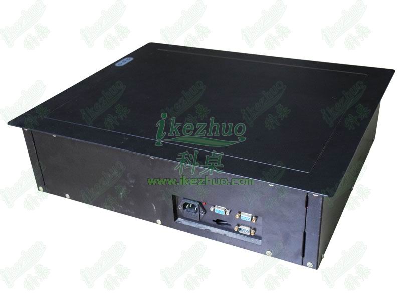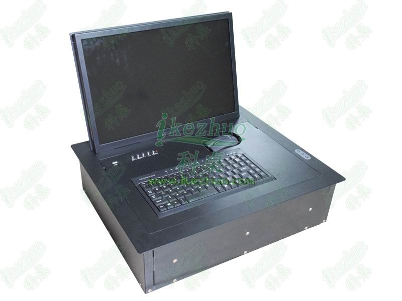 下液晶顯示器,當打開翻轉(zhuǎn)器時液晶顯示屏會自動翻轉(zhuǎn)開,鍵盤也同時會自動升起與桌面齊平,當不使用時,顯示屏可隱藏