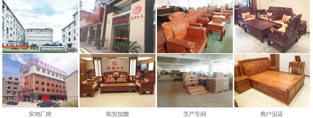 我們是浙江省東陽市較大的紅木家具生產(chǎn)廠家之一,東陽有著【世界木雕之都】的美譽!是我國中高檔紅木家具采購批發(fā)中心。為全國單體經(jīng)營面積的專業(yè)紅木家具批發(fā)市場。海強紅木為紅木家具30強企業(yè),我們擁有自主土地工廠!線下各大紅木家具展廳。主要批發(fā)加盟開店為主,客戶遍布全國,讓紅木家具走進千家萬戶!也以批發(fā)的價格零售 標準烘干處理;榫卯結(jié)構(gòu);100%實木不參假。真正的良心企業(yè)!