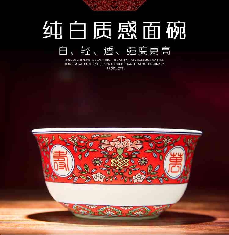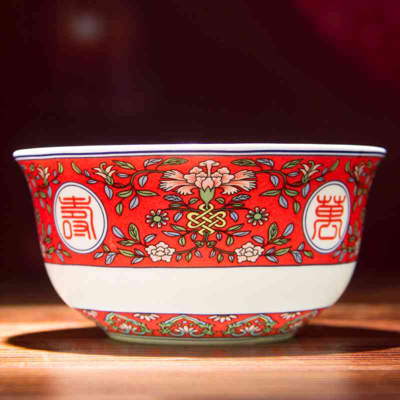 祝壽,通俗易懂就是為長輩過生日也叫作過壽,男子常用“仁者有壽”、“貴壽無極”,女子則用“蓬島春藹”、“壽域開祥”等。傳說紅色可以辟邪水災(zāi),所以許多人都喜歡將家中老人壽誕上的壽碗定做成紅色,圖一個(gè)好的寓意!