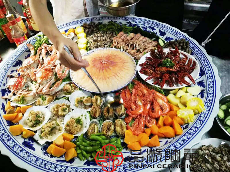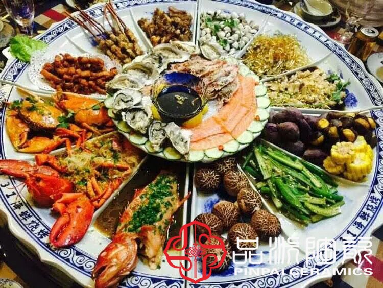 我們在2012年首次推出酒店海鮮大魚盤以來。其瓷盤超大、上菜氣場非凡、耐高溫、不易碎等優(yōu)點(diǎn)。為全國酒樓創(chuàng)新菜系開拓出光輝一面。在走過風(fēng)風(fēng)雨雨幾年春秋。從最初的普通蒸汽海鮮平盤、到總結(jié)客戶需要。為使得中式菜系能夠使用的我們的盤。我們推出了整體分格瓷盤。通過手工分根據(jù)客戶需求分格出一塊塊小格子,每道菜中間有阻攔,湯水之間就避免的串味。因?yàn)槲覀兊谋P子不僅裝菜拼盤獨(dú)特,其直徑是其她日用盤不能比擬的,盤子實(shí)在是太大,如酒樓包廂裝修門的直徑一般在90cm如一塊一米直徑的大盤不可進(jìn)入包廂。在進(jìn)行總結(jié),把整體大盤分格城四塊到包廂組合成大圓盤,其工藝復(fù)雜程度全程手工制作。雖說大盤屬于是日用瓷。但制作過程不亞于一件藝術(shù)品。