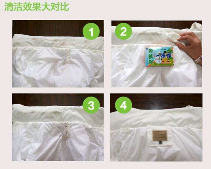 3、邊角及污漬較重的部位可將羽絨服一擦凈豎起,用邊沿位置旋轉(zhuǎn)擦拭,清潔縫隙內(nèi)的污漬。