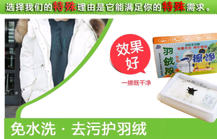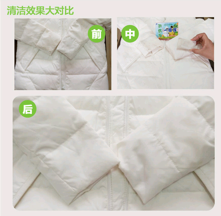 1、首次使用,先將羽絨服一擦凈用清水完全打濕,用手搓出內(nèi)部有效物泡沫。