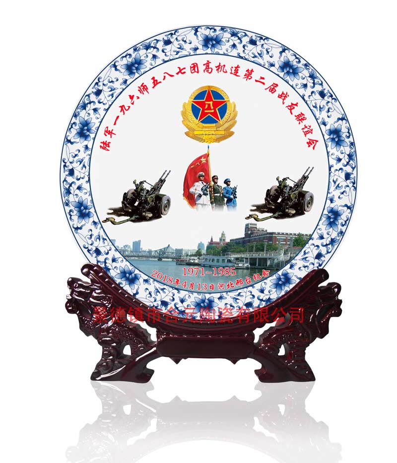 老兵退伍活動留念裝飾瓷盤定制在一直深受人們喜愛。因為定制留念裝飾瓷盤不經(jīng)可以裝飾擺件還可以當(dāng)做紀(jì)念品收藏,定制裝飾瓷盤的畫面也不用擔(dān)心會褪色變色,因為合元生產(chǎn)定制瓷盤都是經(jīng)過高溫?zé)贫傻摹.嬅嫔是逦r艷。