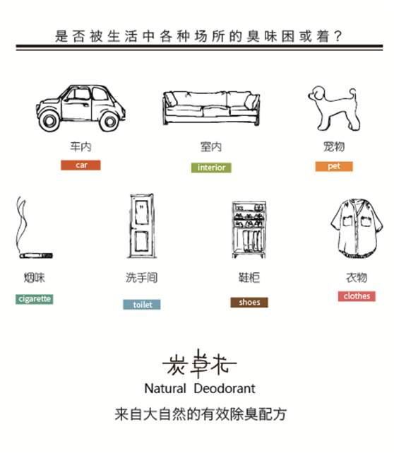炭草花品牌,以設(shè)計切合望能透過設(shè)計帶來美而實用的生活用品,從城市人日常生活點(diǎn)滴與見聞擷取靈感,喚起對生活質(zhì)量的探索與追求。希望確實的帶來對環(huán)境與人體無害的友善產(chǎn)品。以作為能幫助社會的企業(yè)為共同目標(biāo),而創(chuàng)立了炭草花。名為炭草花也是因為我們產(chǎn)品之設(shè)計均選擇高品質(zhì)及天然的植物材料、享受生活的同時,卻不對環(huán)境造成傷害。