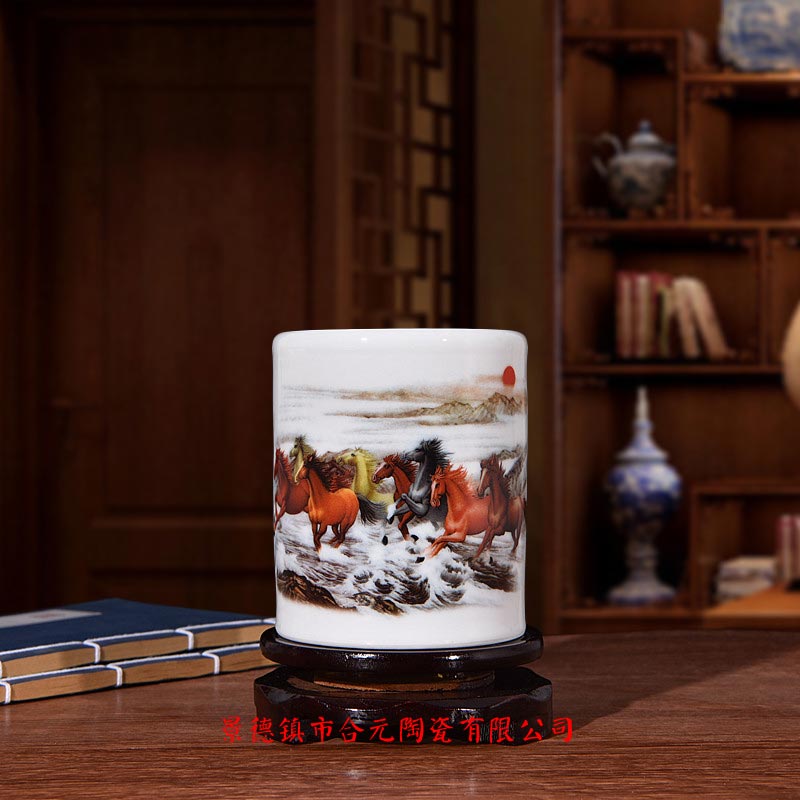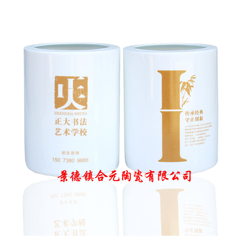 文化紀(jì)念陶瓷筆筒定制各種圖案大多數(shù)以山水,花鳥,動植物為主,景德鎮(zhèn)合元陶瓷可以更具客戶的要求個性定制特色的圖案,logo,文字等。