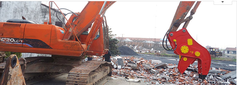 力道強(qiáng)勁=超高效率1、工作效率是破碎錘的二至三倍。 2、粉 碎鉗可以出色的完成一系列作業(yè):即將鋼筋從混凝土塊中分離出來,折彎并裝載到卡車上,從而明顯的提高了工作效率。 3、作業(yè)完全機(jī)械化,安 全又省時(shí)。 大開大闔=提高效率1、咬合密實(shí)間隙小,操作靈活。 2、大開口設(shè)計(jì),工作輕松、方便。 3、裝有鋼筋切斷器,粉 碎鉗可以同時(shí)進(jìn)行兩項(xiàng)作業(yè),粉 碎混凝土并切斷暴露的鋼筋,使破碎作業(yè)效率更高。 堅(jiān)固耐用=節(jié)約成本1、采用瑞典高硬度輕質(zhì)鋼材,堅(jiān)實(shí)無比! 2、充分了解中國市場(chǎng)使用習(xí)性,針對(duì)磨耗部件及結(jié)構(gòu)件重點(diǎn)強(qiáng)化,壽命加倍! 3、顎齒制成了特殊形狀用以牢固的固定混凝土塊,楔入并粉 碎,以便進(jìn)行快速軋碎。顎齒非常堅(jiān)固,具有高耐磨性。 輕便快捷=創(chuàng)造效益1、拆裝容易,獨(dú)家油路設(shè)計(jì),不僅油缸速度加倍,并且可與破碎器通用,一機(jī)多任務(wù)。 2、低噪音無振動(dòng),滿足環(huán)保要求,適合城市與高新園區(qū)的拆除工程。 3、液壓油缸配有護(hù)蓋,用以阻攔混凝土塊和鋼筋的飛濺碎屑。