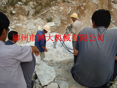 分裂:幾支分裂槍同時分裂,分裂時間僅需十幾秒鐘就可完成,大塊漢白玉石立刻被分裂開、然后用輔助工具千斤頂、鐵锨、撬杠協(xié)助撬開分裂面,成材率高。