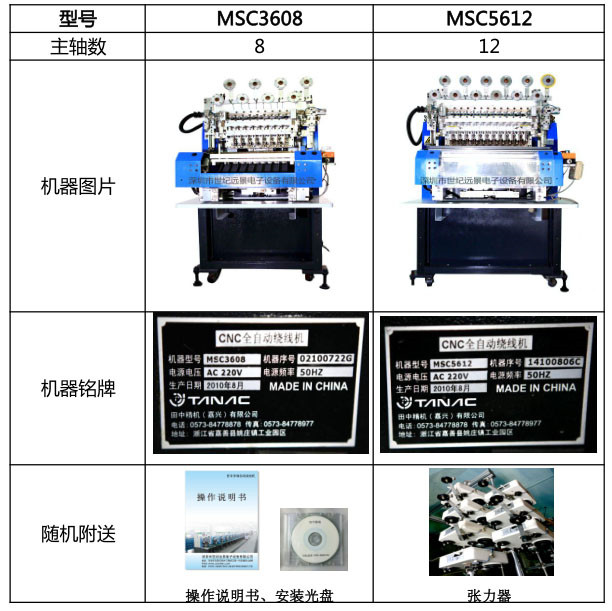 田中多軸自動繞線機技術(shù)參數(shù)一覽表