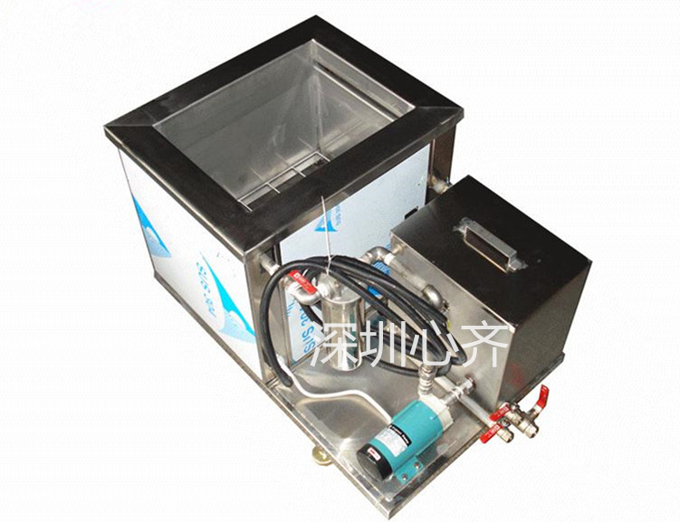 循環(huán)過濾超聲波清洗機(jī)主要由超聲波發(fā)生器(控制箱)、換能器、清洗槽、儲液槽、活動腳輪、支腳、循環(huán)過濾系統(tǒng)及加熱系統(tǒng)等組成。