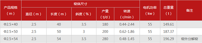 在這里以恒星重工生產(chǎn)的鎳鐵回轉(zhuǎn)窯型號為例,為您奉上具體的技術(shù)參數(shù)信息,如下: