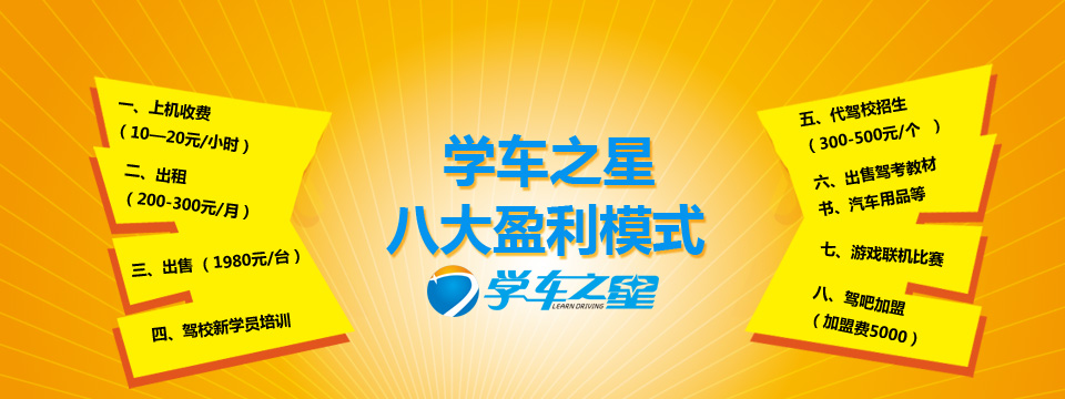 學車之星智能汽車駕駛訓練機蘊藏的商機是前所未有的,是難以想象的!全新的市場,多樣的經營方式,眾多的銷售渠道,代理學車之星智能汽車駕駛訓練機,成功是遲早的事!
