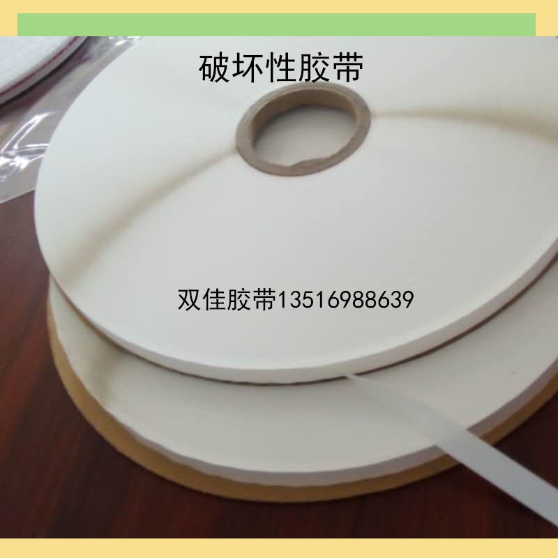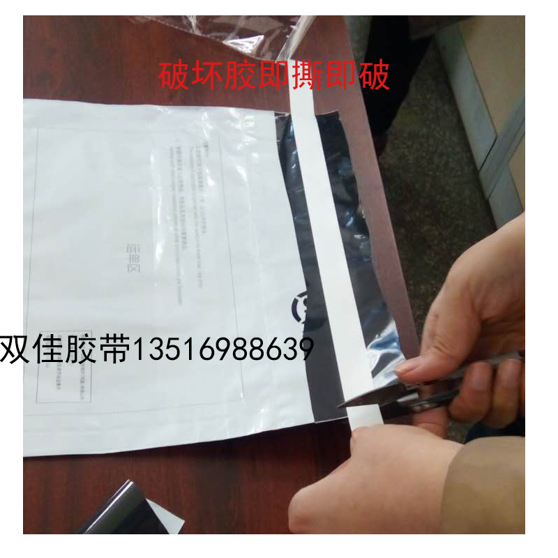 破壞性雙面膠帶與普通封緘膠帶相似,里面涂布比離型膜窄的膠條,因此易于撕除離型膜;同時(shí)具有超強(qiáng)的表面粘著力,長(zhǎng)效的保持力,良好的熱穩(wěn)定性以及破壞性的特性,所以只能一次性使用。適用于郵件袋、快遞袋、保密袋、產(chǎn)品包裝袋等各種塑膠袋封口,粘合后只有破壞包裝才能接觸其中物品,起到良好的保密作用。