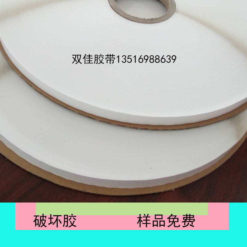 破壞膠帶由四部分組成:珠光膜、熱熔膠、油膠、pet,主要用于pe袋的封口或opp重包裝袋封口,起破袋作用